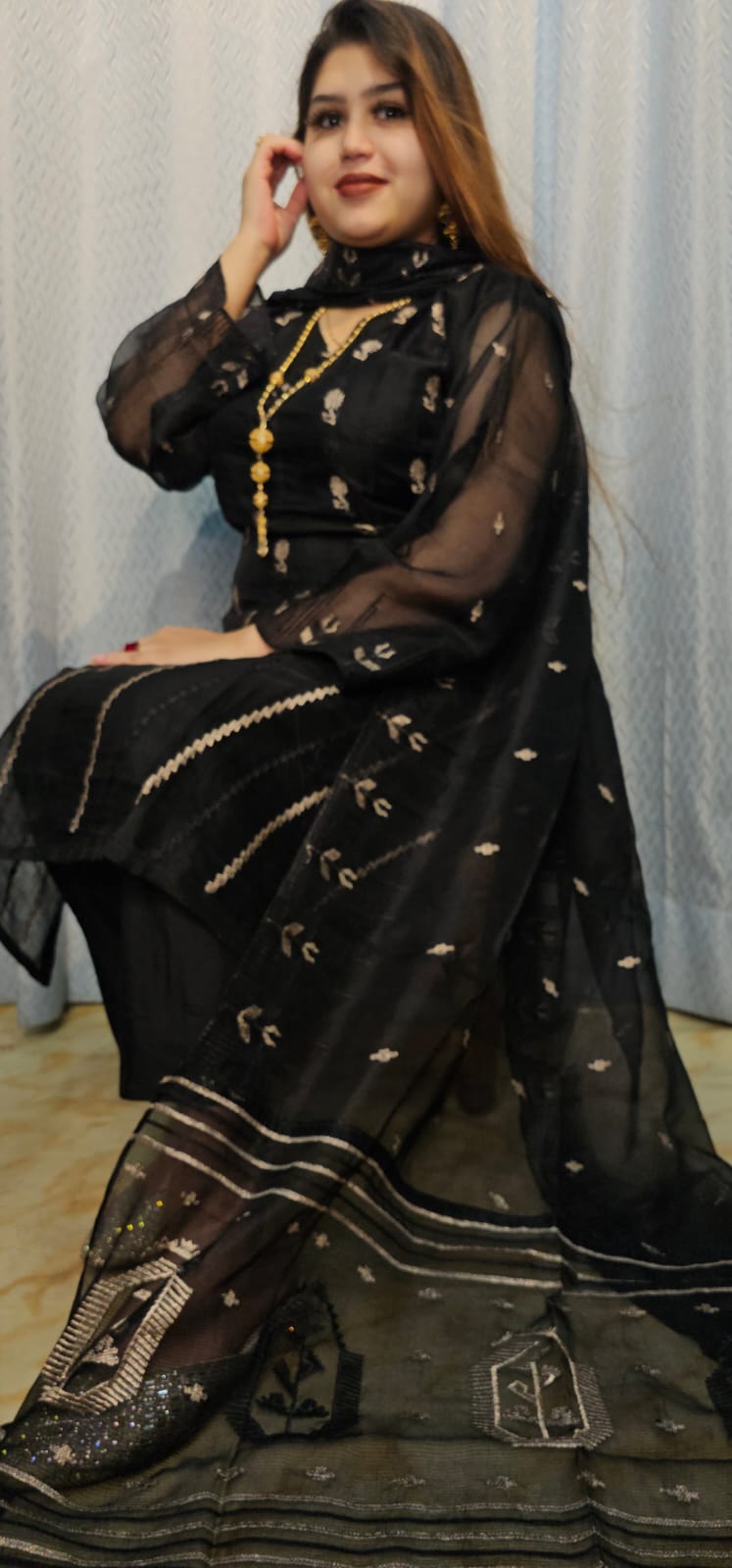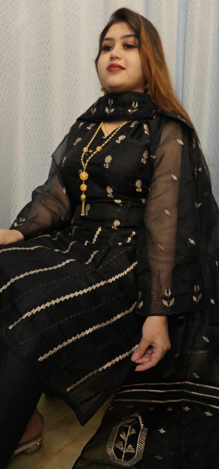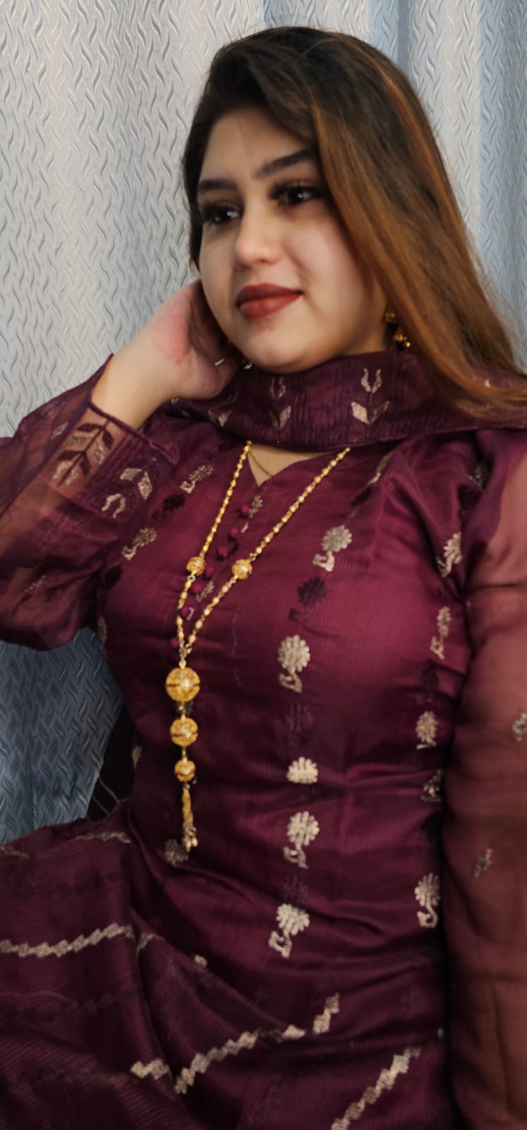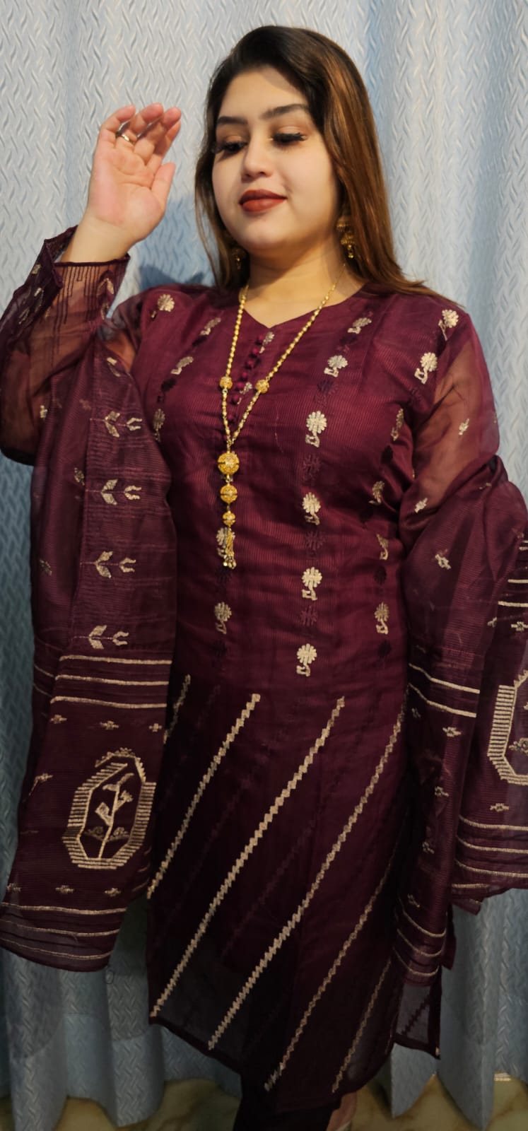 রেডি বডি ৪৬/৪৮ ও লং ৪৩ সাইজে প্রস্তুত এই আউটফিটে হালকা কোটা কাপড়, বাটার সিল্ক আনরেডি পায়জামা ও ৫ হাত এমব্রয়ডারি করা দোপাট্টা।