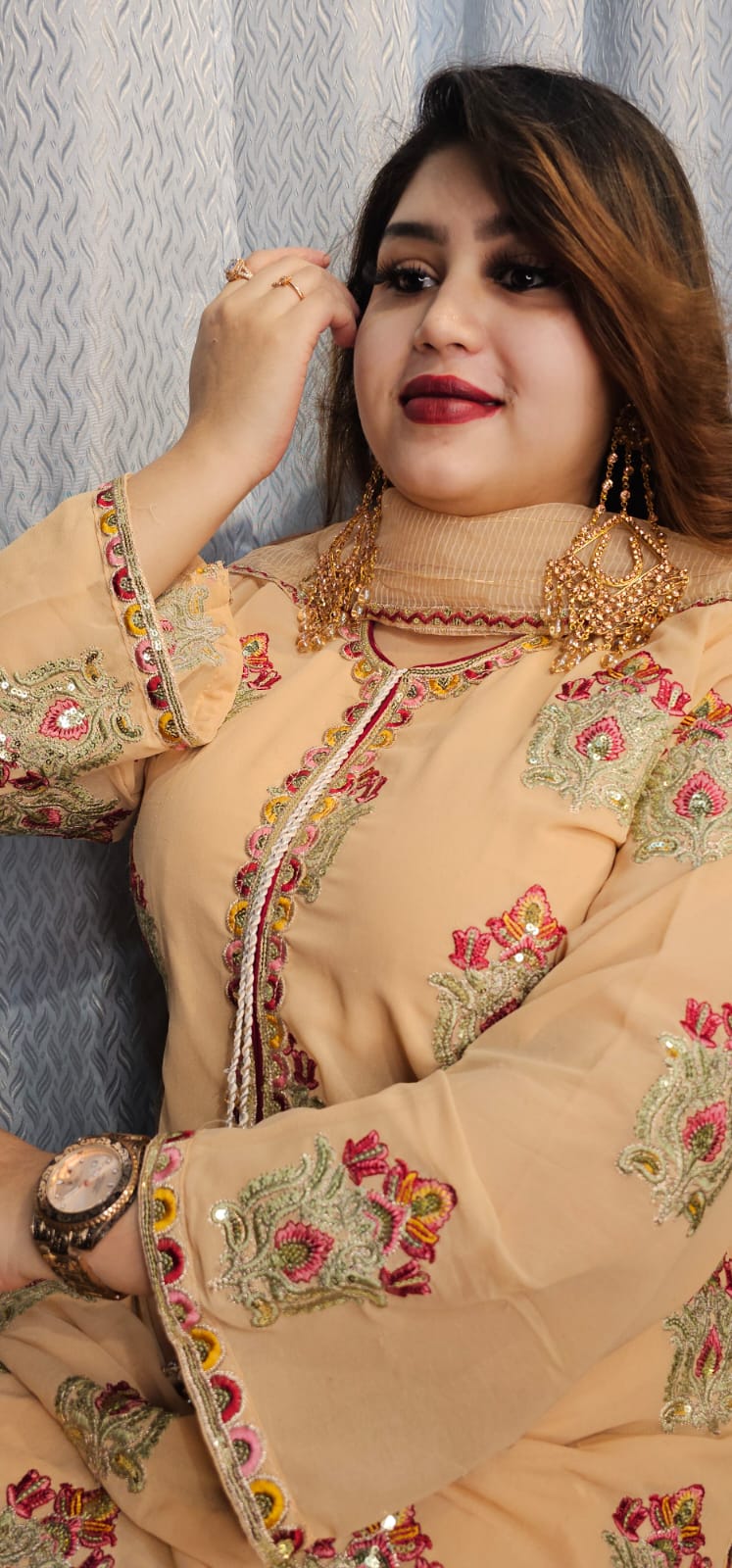হেভি গর্জিয়াস এমব্রয়ডারি ও সিকোয়েন্স ডিটেইলে একদম রয়্যাল লুক। ঈদের নামাজ, দাওয়াত বা ফ্যামিলি গ্যাদারিং—সবখানেই পারফেক্ট।