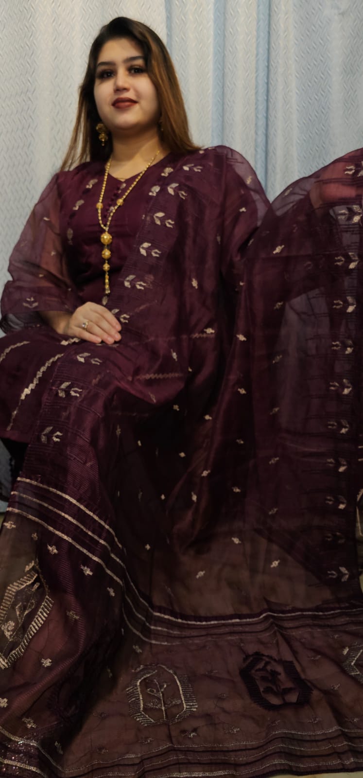 রেডি বডি ৪৬/৪৮ ও লং ৪৩ সাইজে প্রস্তুত এই আউটফিটে হালকা কোটা কাপড়, বাটার সিল্ক আনরেডি পায়জামা ও ৫ হাত এমব্রয়ডারি করা দোপাট্টা।